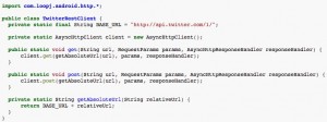 官方推薦的使用方法,使用一個(gè)靜態(tài)的請求對象,我們來看看官方例舉的一個(gè)訪問Twitter的API的例子: